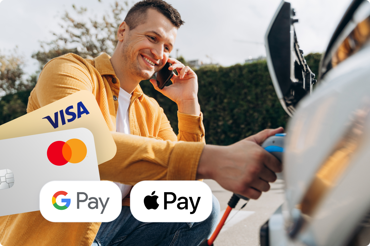 Atsiskaityti už įkrovimą galite jums patogiu būdu – banko kortele, „Apple Pay“ arba „Google Pay“. Kad būtų užtikrintas sklandus atsiskaitymas, prieš prasidedant įkrovimui bus rezervuota 30 Eur suma. Pasibaigus sesijai nuskaitoma tik faktinė įkrovimo kaina, o nepanaudota rezervuota suma automatiškai grąžinama.