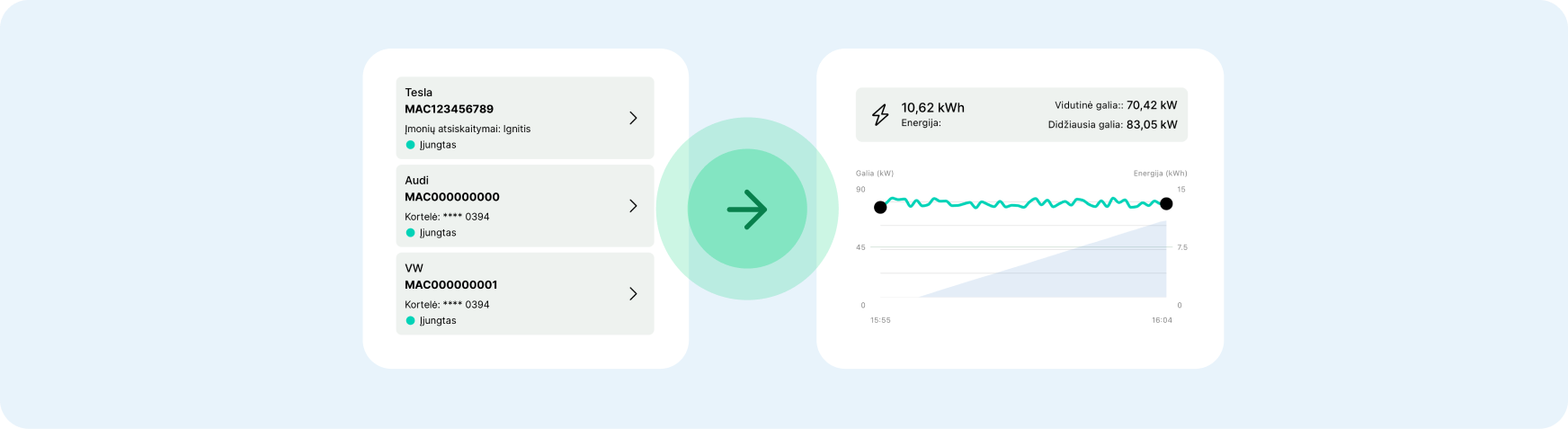 Vienoje paskyroje visi jūsų elektromobiliai